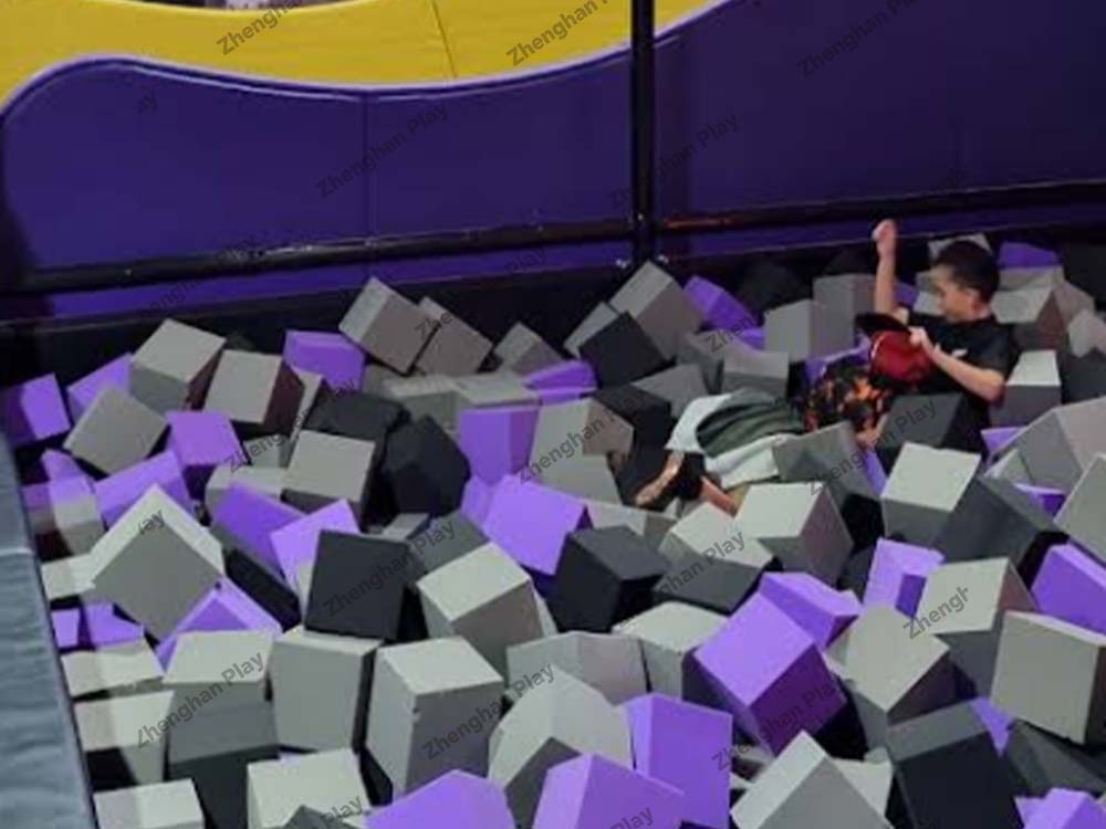 Impact zones incorporate 28g density foam blocks and thickened ocean balls with an 8cm diameter. Trampoline areas are protected using 7cm thick pearl cotton padding. Play platforms consist of moisture-resistant boards layered with 3cm pearl cotton for effective impact absorption.