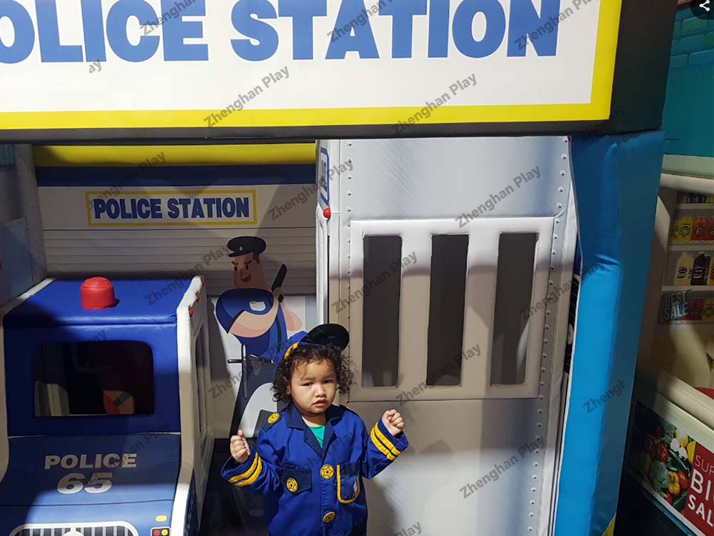 All child-contact surfaces are finished with 0.45mm flame-retardant PVC, selected for abrasion resistance and ease of cleaning. Decorative areas use 0.9mm PU covering. EVA safety flooring is installed at a thickness of 2cm. Role-play toys are manufactured from environmentally friendly plastic materials. All materials are confirmed to be non-toxic, fire-resistant where applicable, and suitable for long-term commercial indoor playground equipment use.